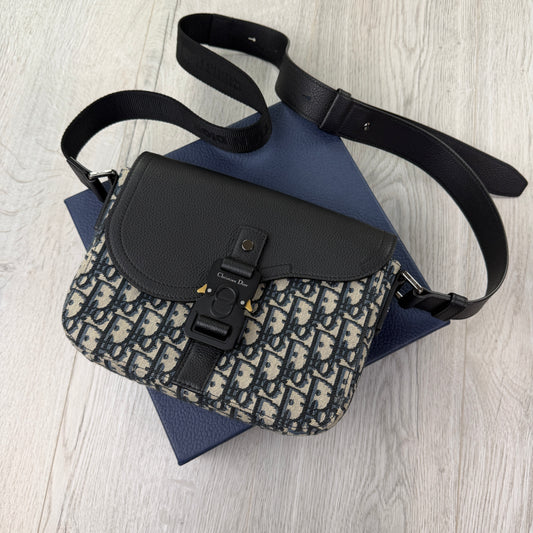 Christian Dior Men’s Beige & Black Oblique Messenger Saddle Bag With Strap