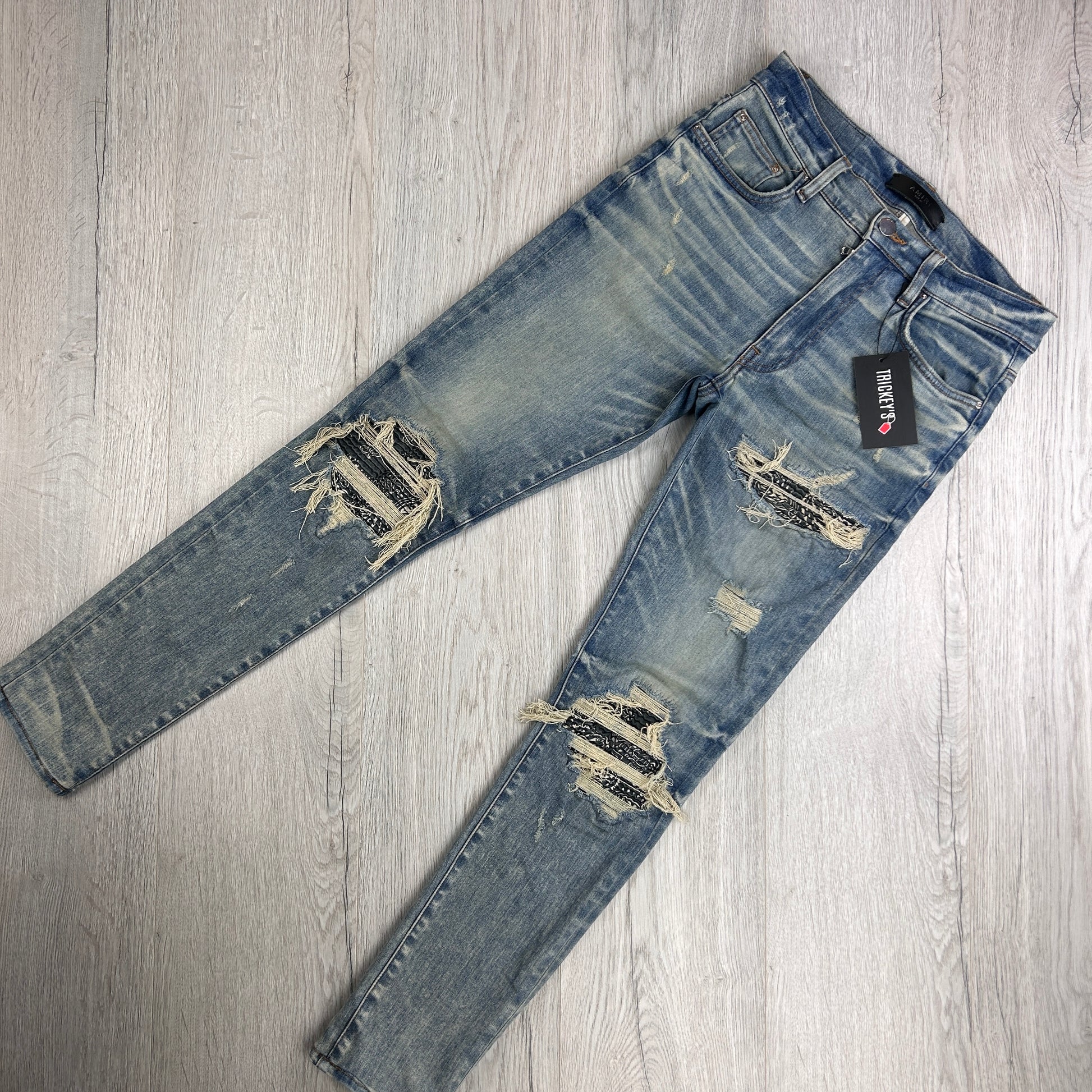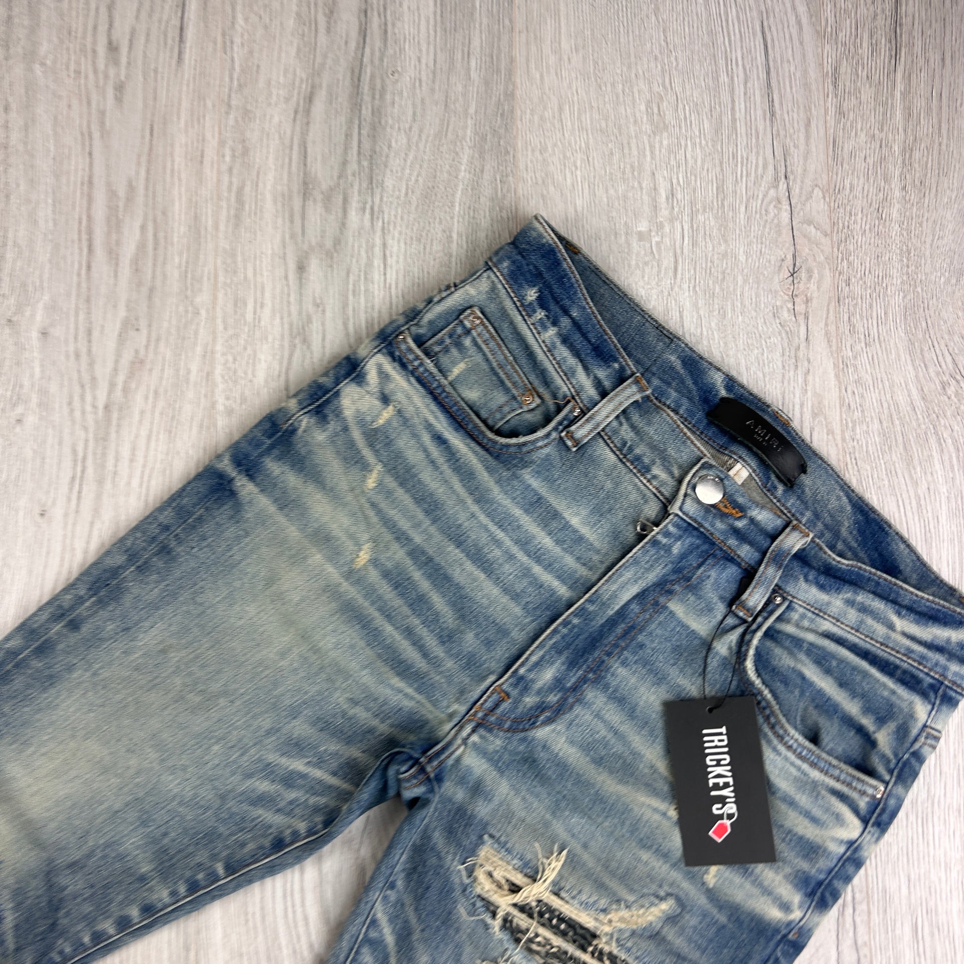 Amiri MX1 Light Blue Distressed Ripped Indigo Jeans - Uk 29