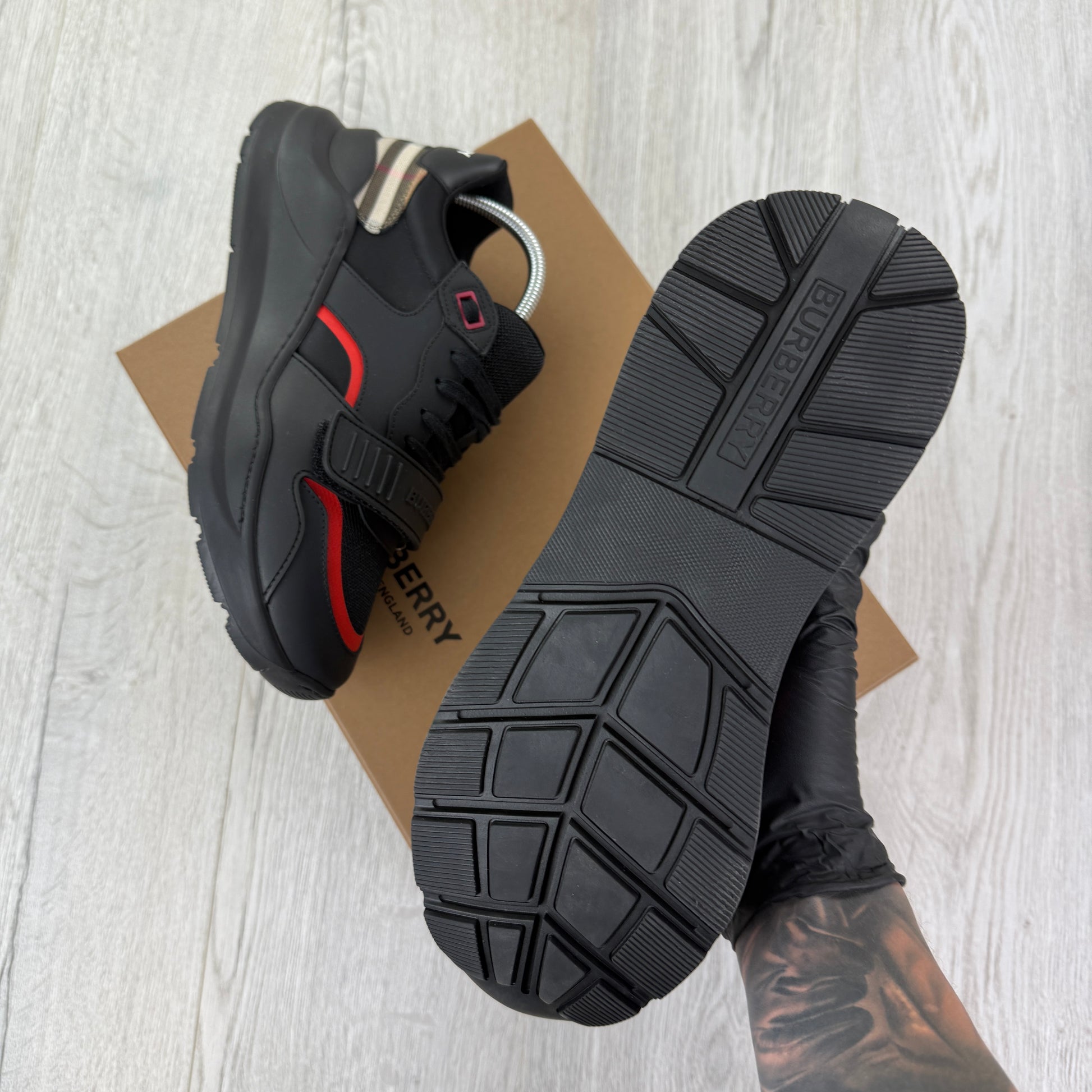 • Burberry Men’s Black & Red Ramsey Check Trainers • Pre-loved like new condition - worn once (professionally cleaned) • box with dust bags • Retail £585 •