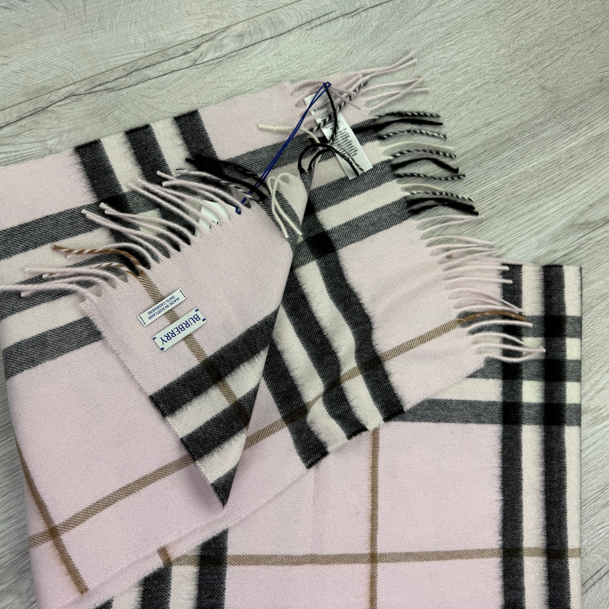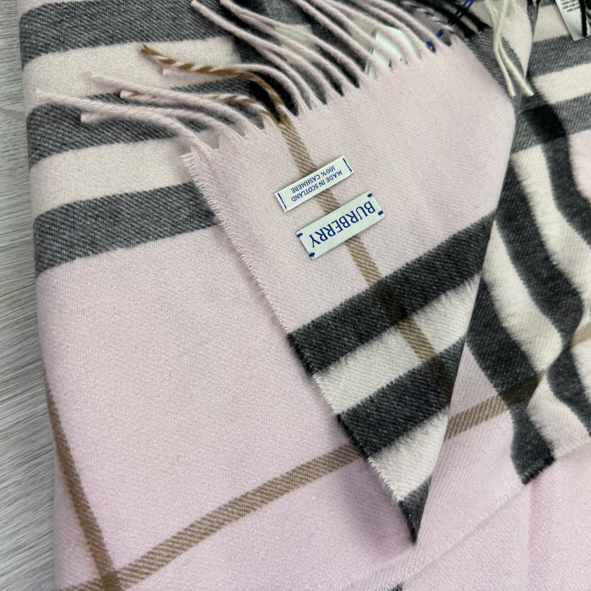 • Burberry Pink Check Cashmere Scarf • Brand new with tags • Retail £420 •