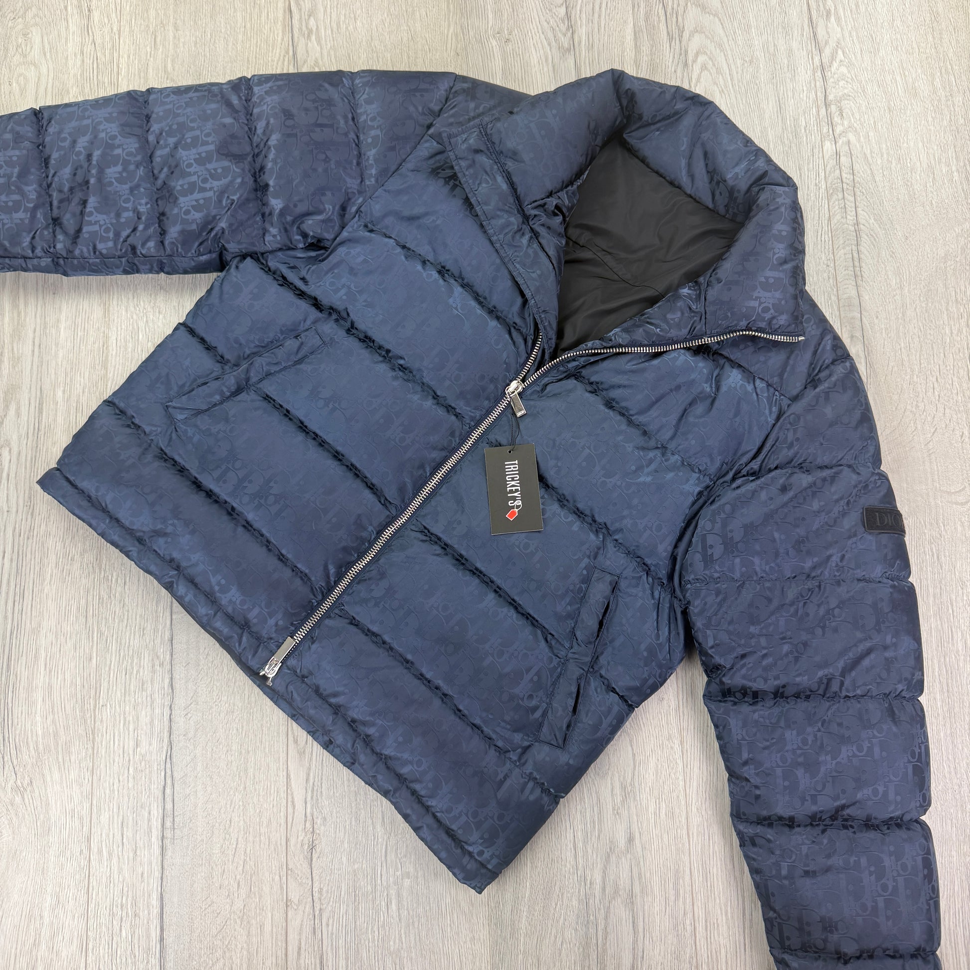 • Dior Men’s Navy Oblique Zip-up Down Jacket - 50 (Large) • Pre-loved immaculate condition with no faults • Retail £2400 •