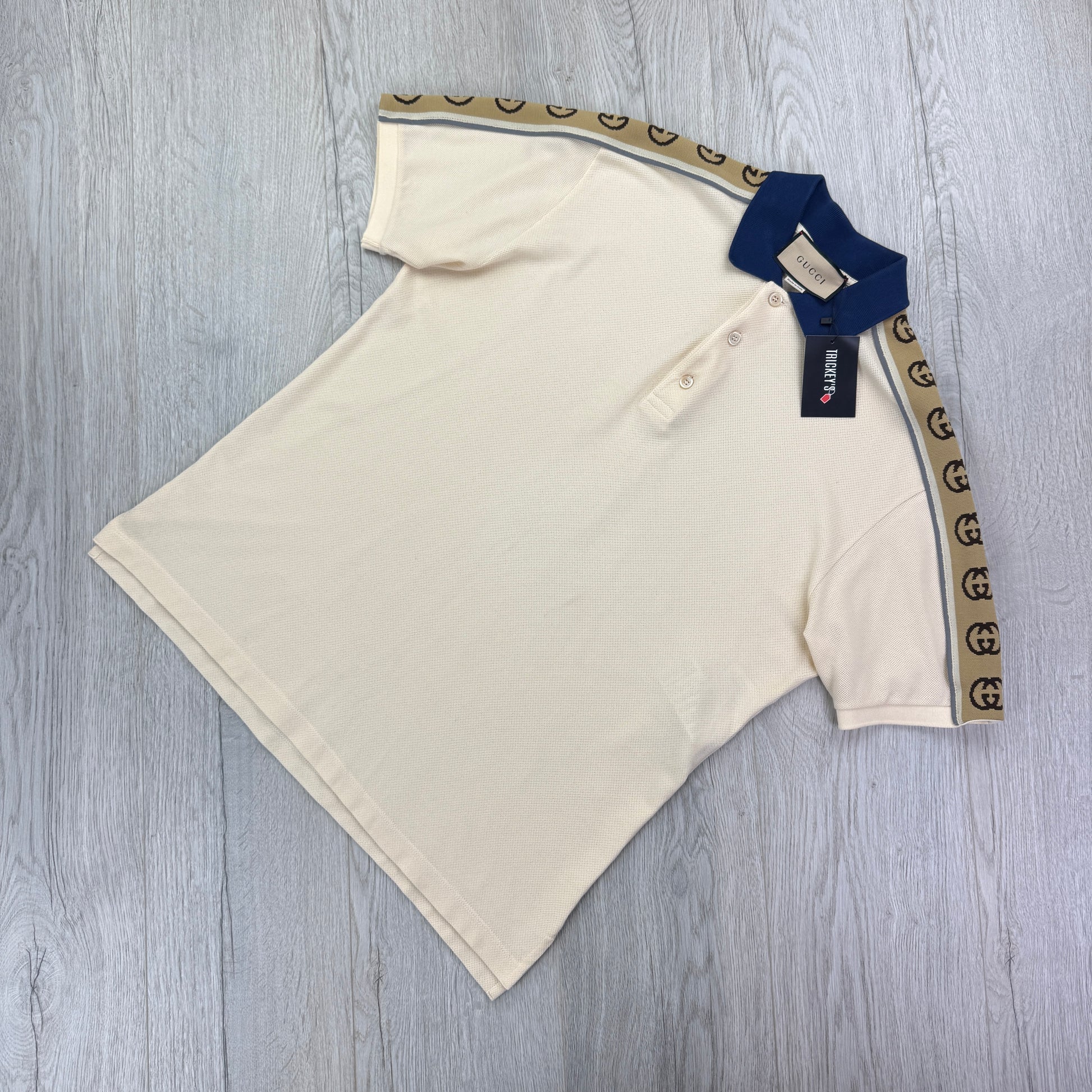 Gucci Men’s Beige Polo With Interlocking G Stripe - Large