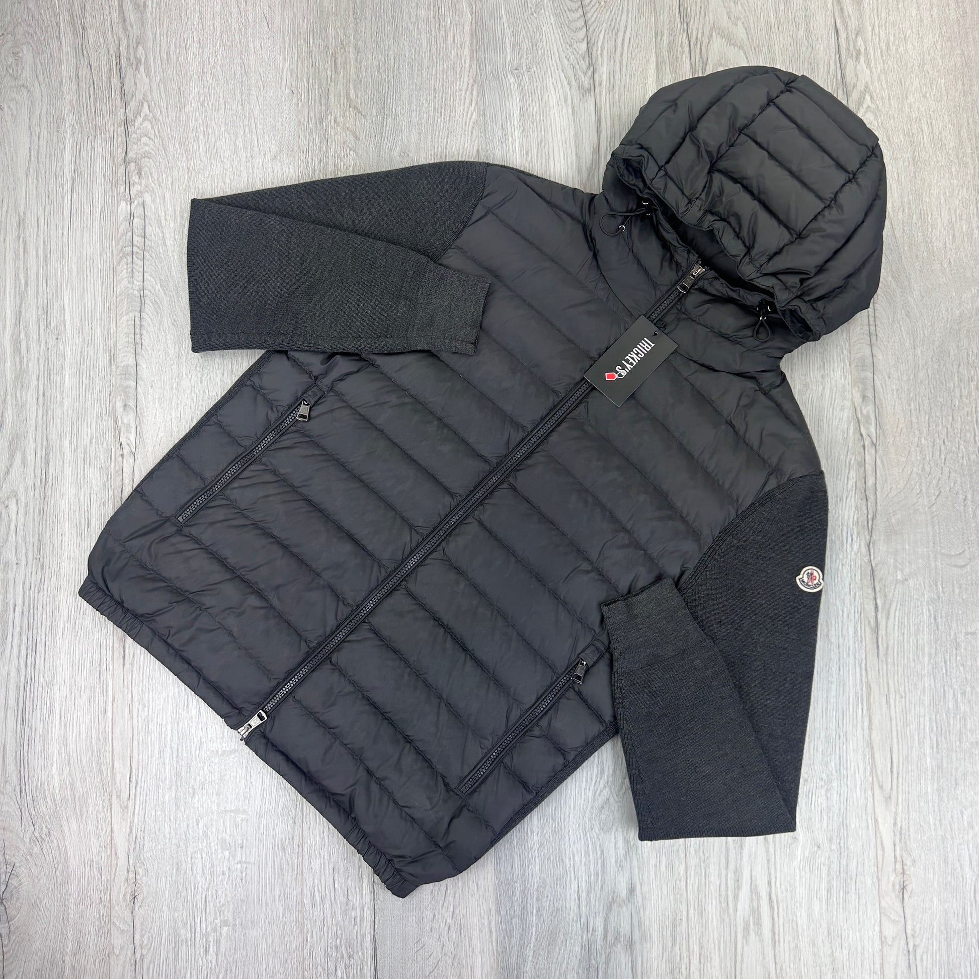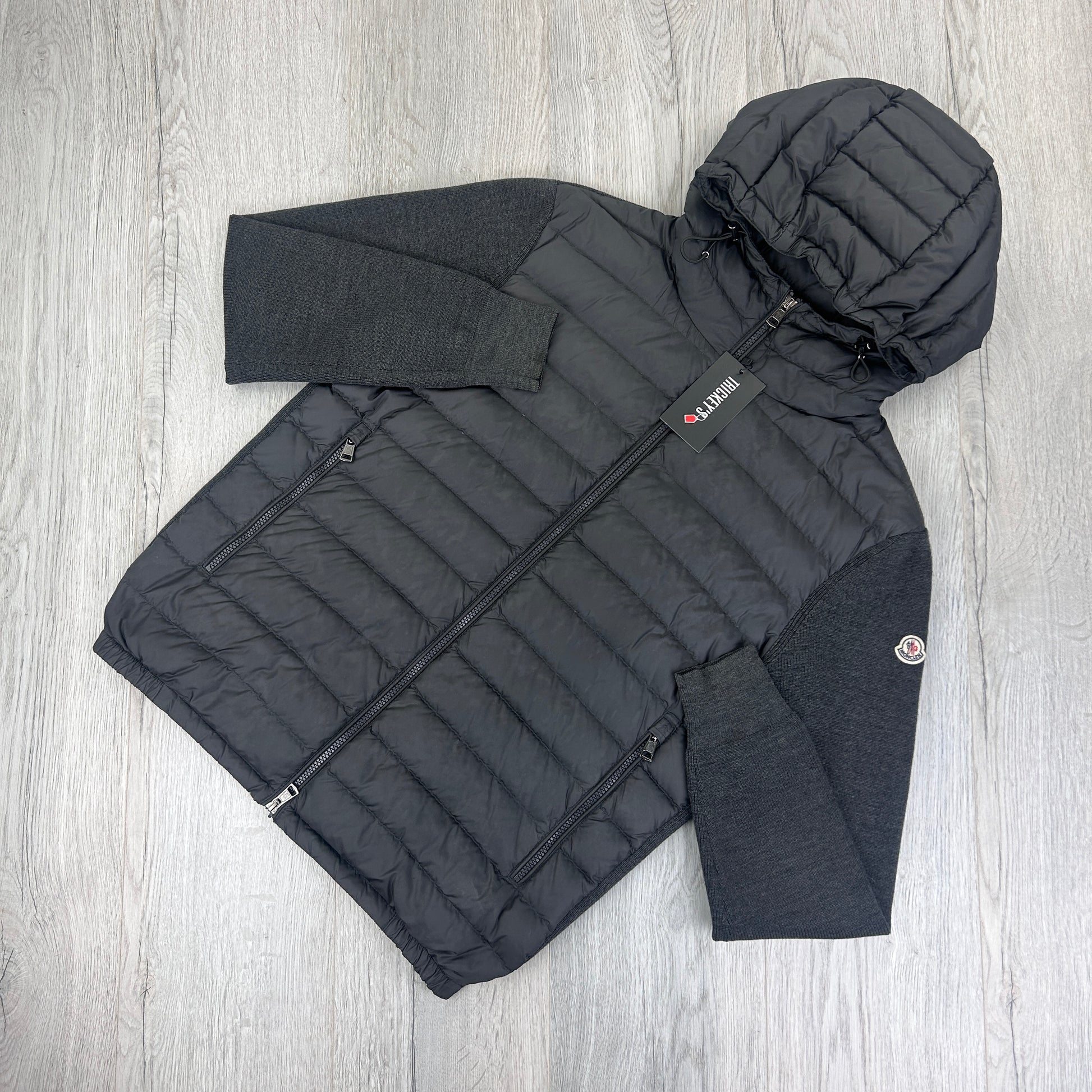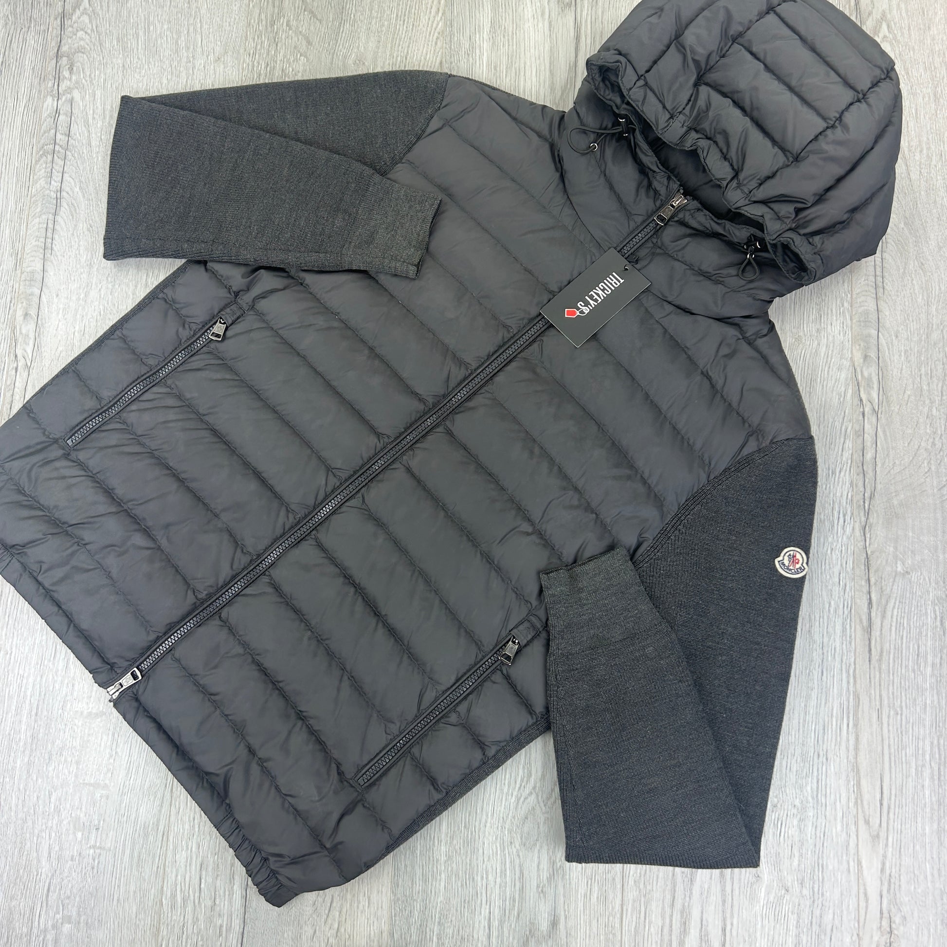 Moncler Men’s Dark Grey Padded & Knitted Maglia Hoodie - XL Slim