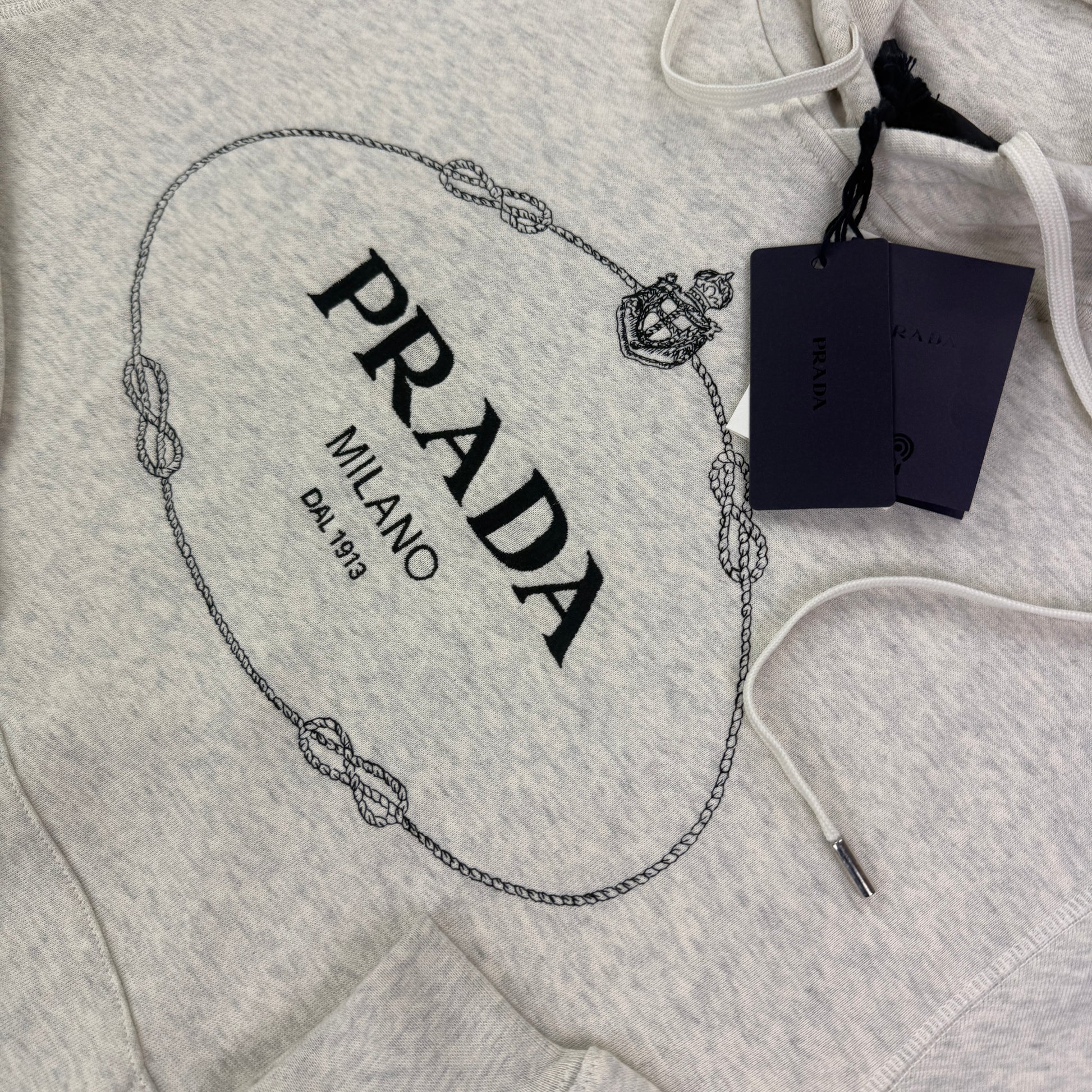 Prada Men’s Light Grey Pullover Hoodie - Small