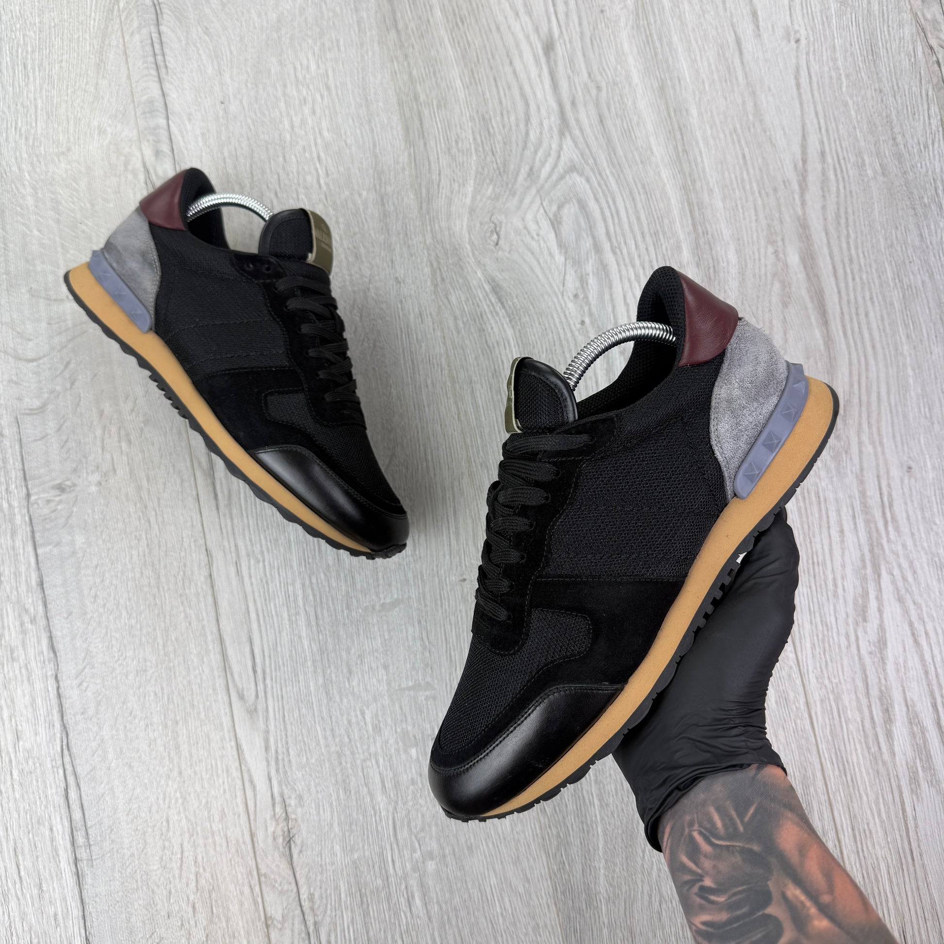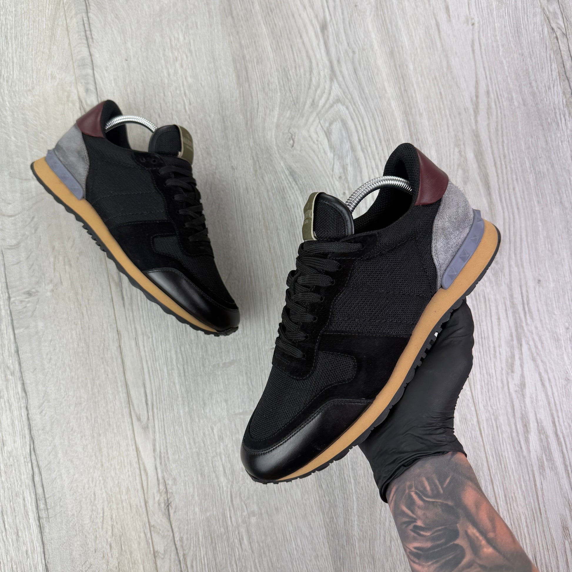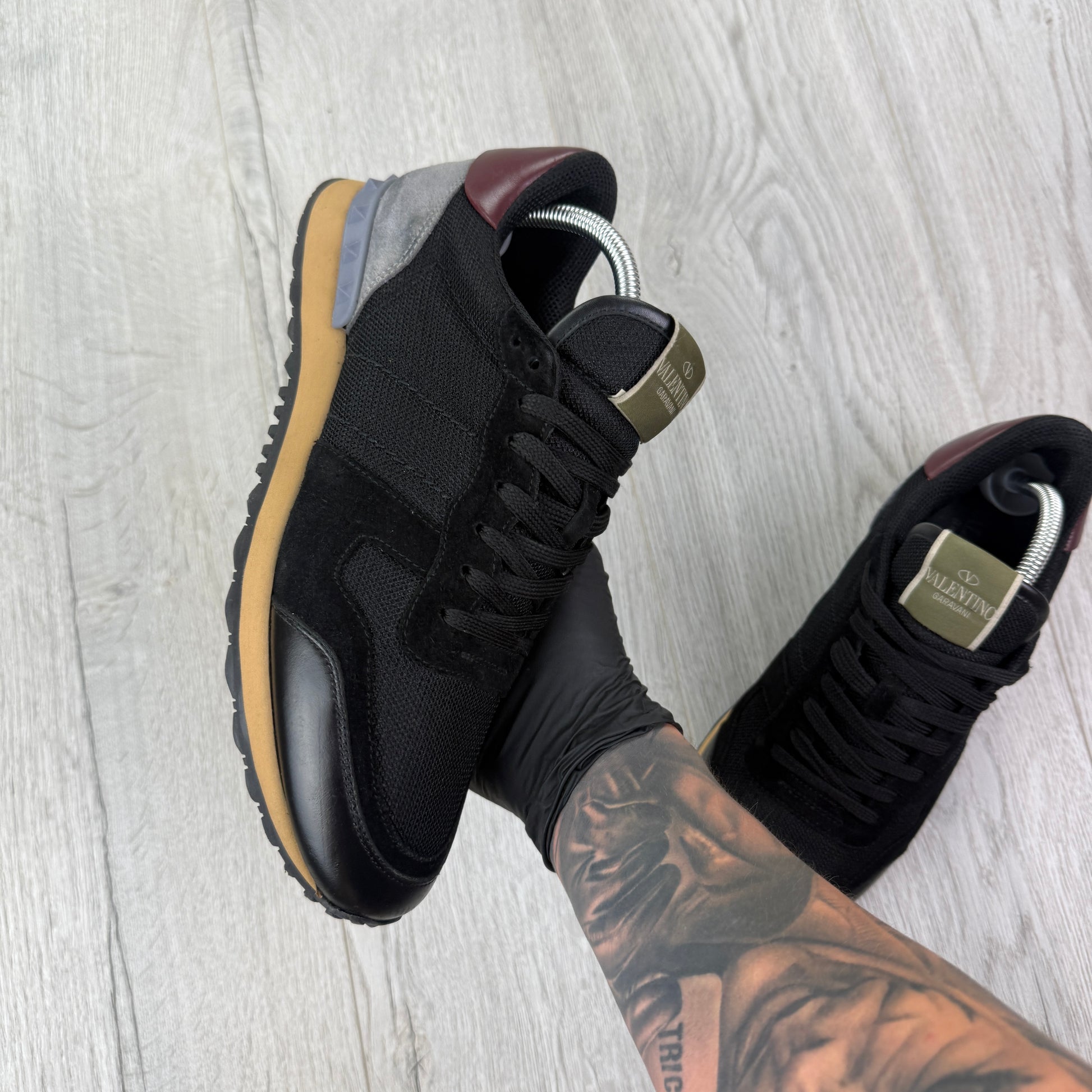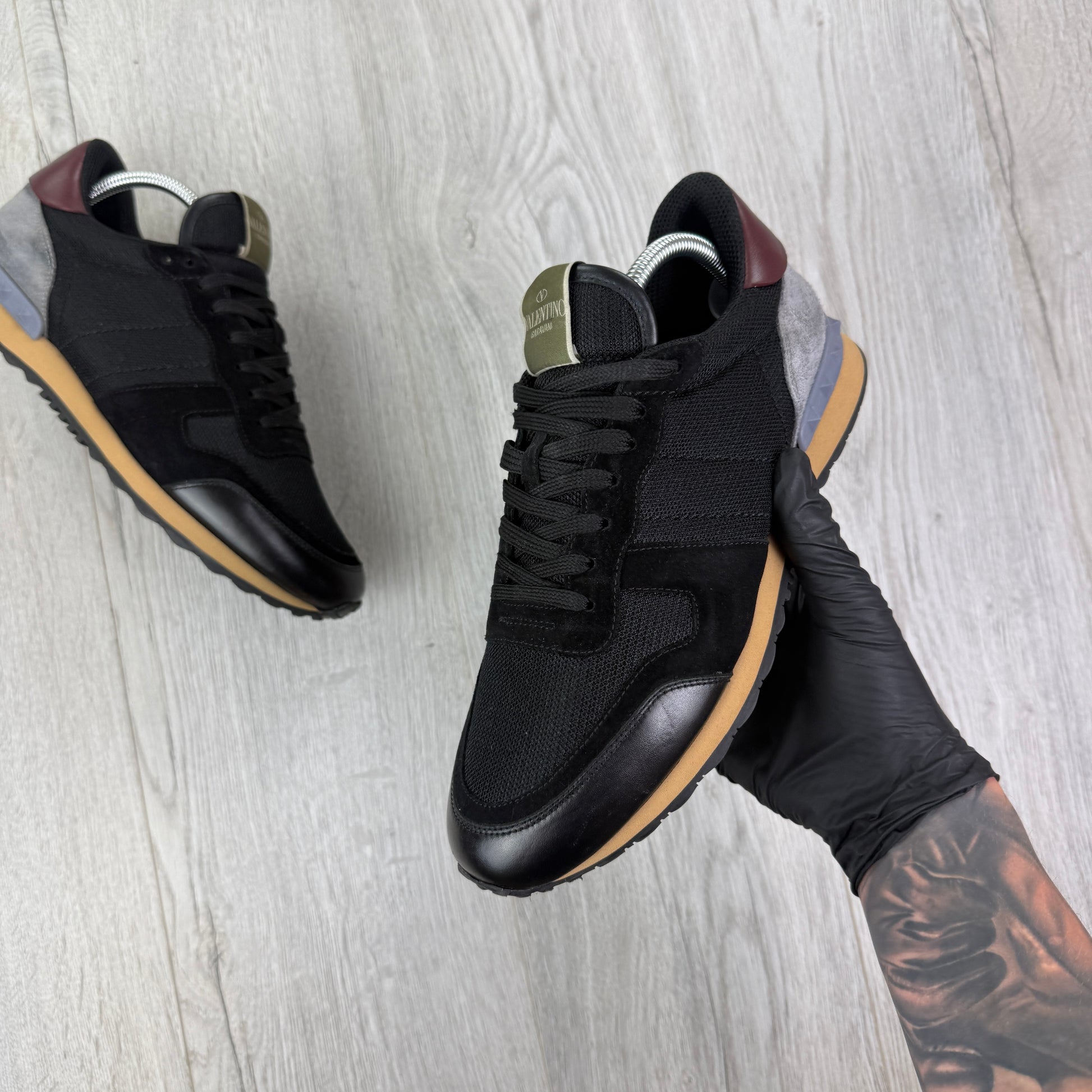 Valentino Men’s Black Mesh Runners With Maroon Heel - Uk 8