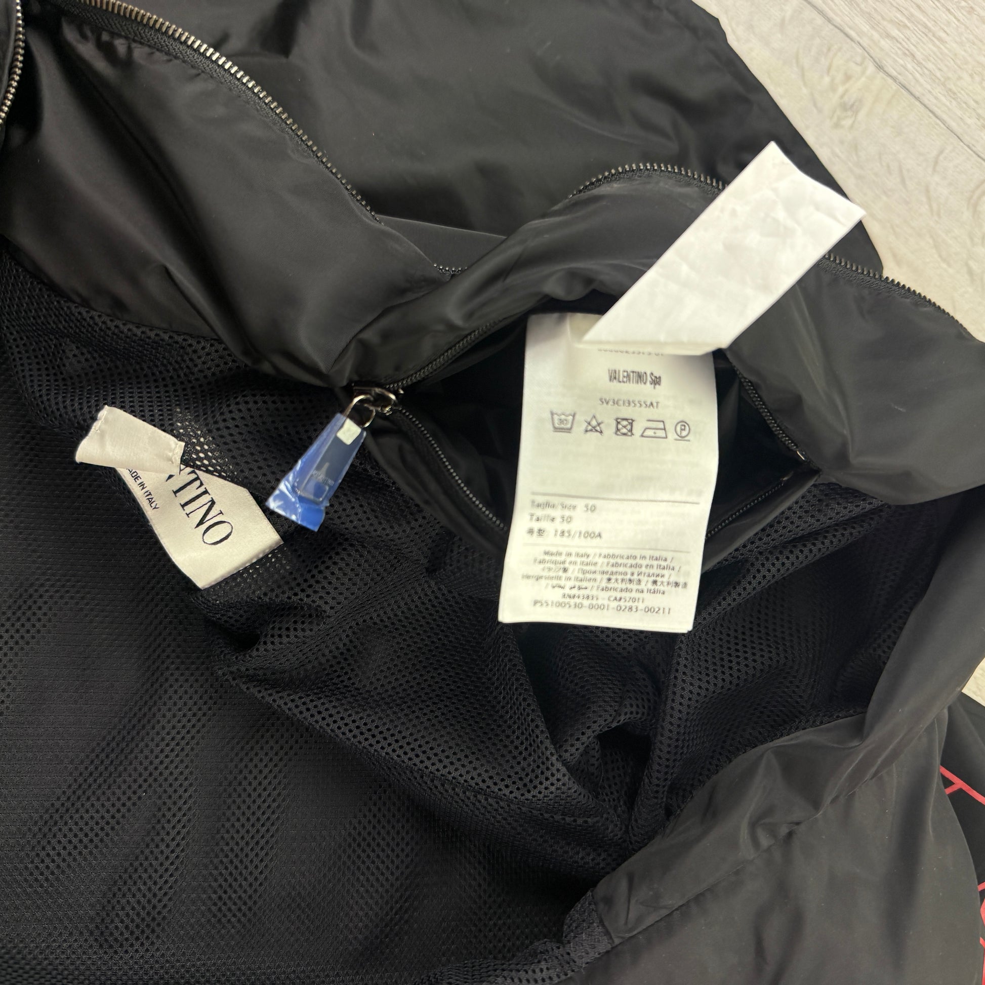 Valentino Men’s Black Windbreaker Jacket Red Logo - Size 50 (Fits Medium)